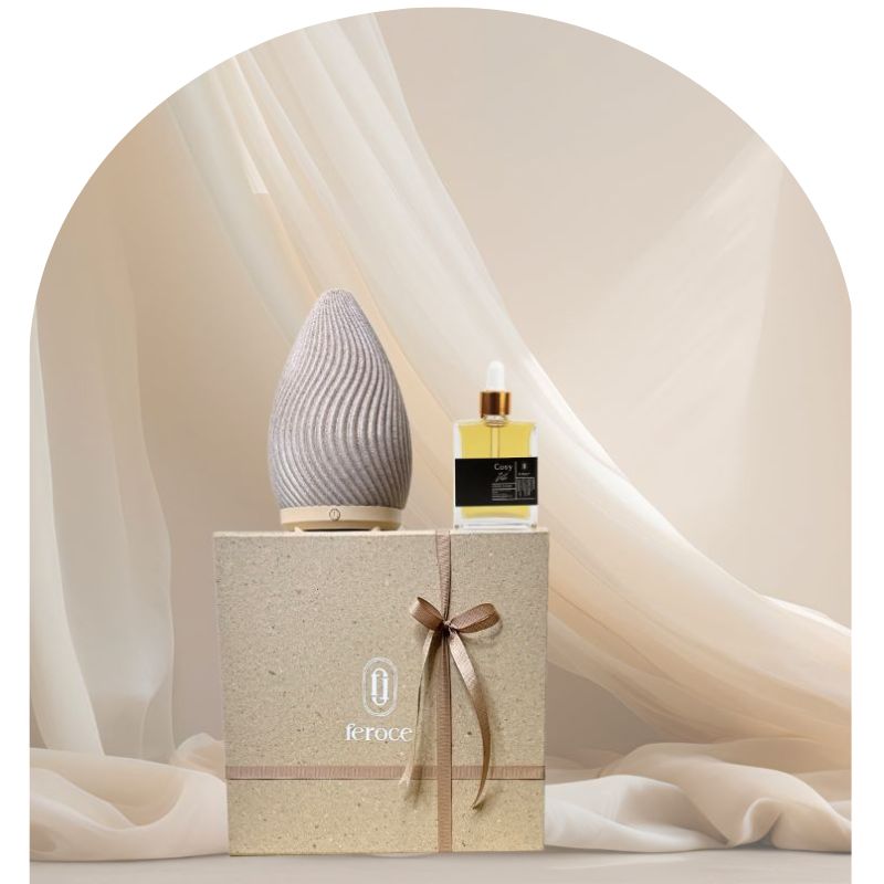 Creëer een knusse en warme sfeer in je huis met onze cosy Vibe Giftset. Deze prachtige set bevat een stijlvolle aroma diffuser en een essentiële olië cosy vibe die een harmonieuze geurervaring biedt.